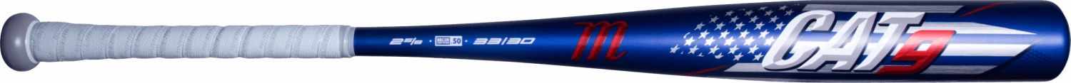 The Marucci CAT 9 America Pastime BBCOR Baseball Bat features a -3 length to weight ratio, 2 5/8-inch barrel diameter, and balanced swing weighting. This model is BBCOR Certified and legal for play in all BBCOR sanctioned leagues and tournaments.