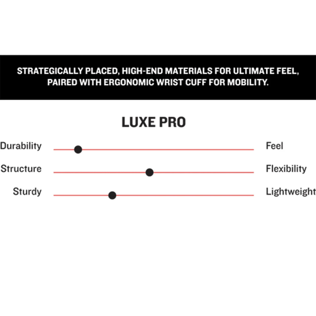 Strategically placed, high-end materials for ultimate feel, paired with ergonomic wrist cuff for mobility.